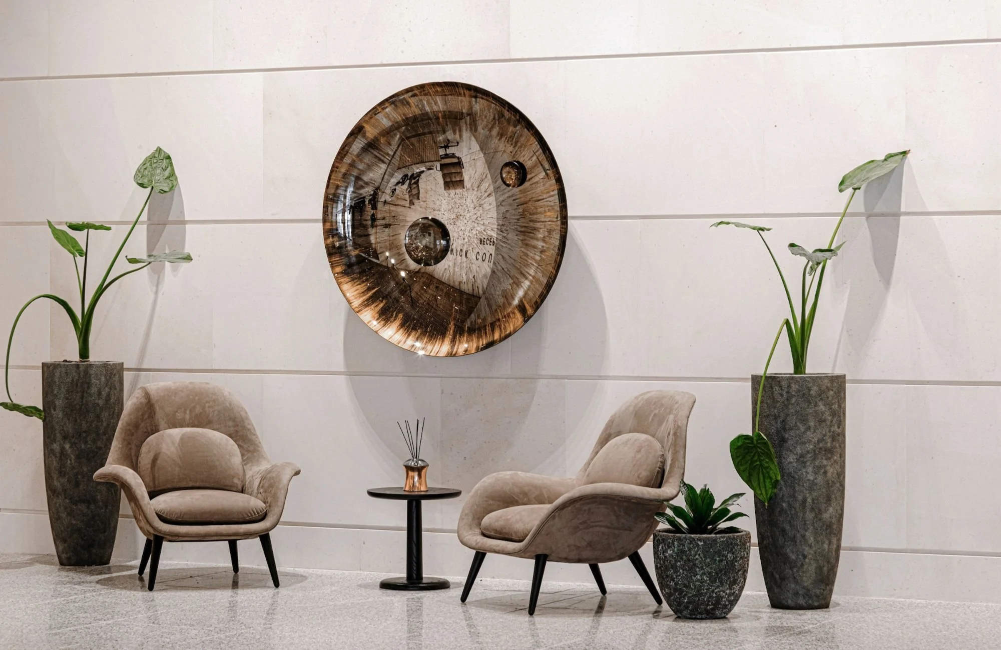 We worked with Mitsubishi estates to commission a captivating entrance piece for Warwick Court, together with Giles’ Miller’s Dual.